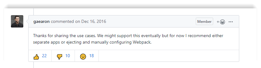 On screen there is a lot of other stuff such as maps, code divided by chunks ant so on, but i hope you've got the idea :) So, let me show how i solve this task: ### yarn eject
