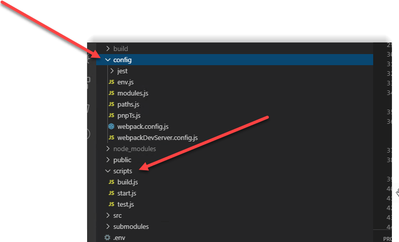 This command ejects all configuration scripts from create-react-app. Use it carefully because you cannot rollback later (only with git, of course). After that you will have some new folders with js scripts in it: